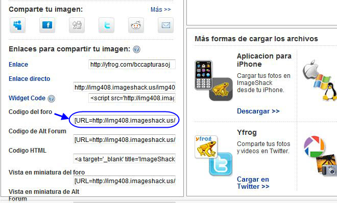 También puedes copiar el enlace directo de ImageShack: