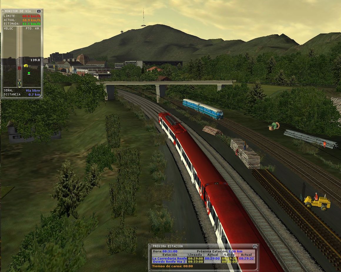 Hola, Actividad conseguida en 1h 35', sin ningún problema de gráficos ni de otro tipo. Los horarios se pueden cumplir fácilmente y hay buen tráfico con cruces y rebases a trenes de FEVE que circulan por sus vías. :D :D :D