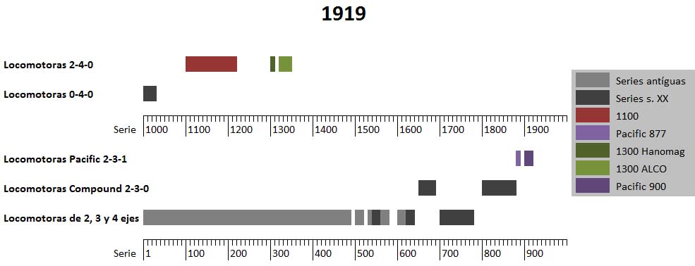 Este estudio excluía las recientes adquisiciones de máquinas tipos 2-3-0, 2-3-1 y 2-4-0, así como las locomotoras-ténder 2-3-2T de cercanías, todas ellas adquiridas ya a partir del año 1900.
