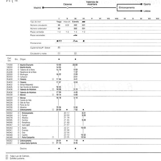 Hace justamente 13 años, en setiembre del 93, tuve que asistir a una convención de mi antigua empresa en Lisboa, como al llegar a Barajas perdí mi enlace con Lisboa y debía estar allí día siguiente a primera hora, cogí por los pelos el Lusitania. Debido al carrerón que me dí y al cansancio acumulado, apenas pude disfrutar del viaje, ya que me quedé frito nada más tocar litera, y lo que es peor: ni me fijé en la composición de dicho tren. La pregunta del millón es : ¿Alguien sabría decirme que composición, tracción etc llevaba entonces el Lusitania Exprés?