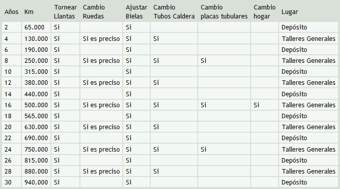 Conforme pasa el tiempo, y aunque se lleve a cabo un cuidadoso mantenimiento de las locomotoras, éstas van perdiendo eficacia, aumentando el consumo de carbón y desarrollando paulatinamente menos potencia, hasta que llega un momento en que es necesario desmontar totalmente la caldera y reparar o sustituir los principales elementos de la máquina. Esta operación se denomina "gran reparación" y se debía efectuar entre los 130.000 y los 150.000 kilómetros.