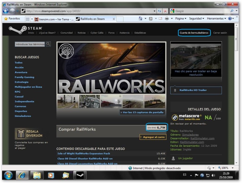Hola, casualmente lo voy a comprar esta semana. Ahora mismo me he registrado en Steam, pero el precio que me aparece son 26,79€, ya logueado. Decir que tengo el Railsimulator original, por si sirve de descuento :D . ¿Como se hace para la rebajita?.