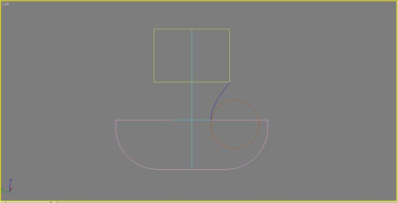 a) ¿Existe alguna forma de desplazar el círculo para que me quede unido al arco y no halla ese espacio?. En AutoCAD es fácil usando la Referencia a objetos/Intersección ficticia. Quizá en Max pueda usar algún Snap determinado, pero agradecería consejos. Ver imagen.
