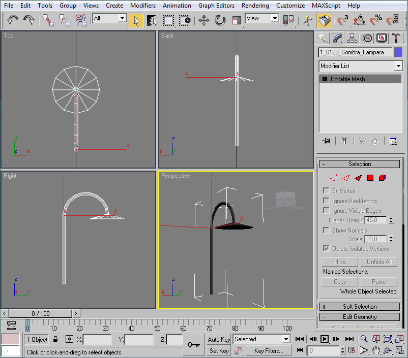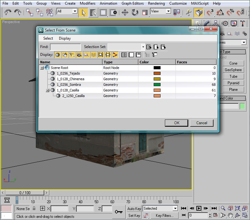 Ahora que ya tenemos los dos elementos de la casilla para sus respectivos LODs, ocultaremos, tal como hemos hecho antes, el LOD lejano 2_1250_Casilla, dado que este elemento ya tiene la malla que queremos. Nos dejaremos visible el LOD cercano 1_0128_Casilla para trabajar en él e incrementar su detalle como corresponde a su visión de cerca.