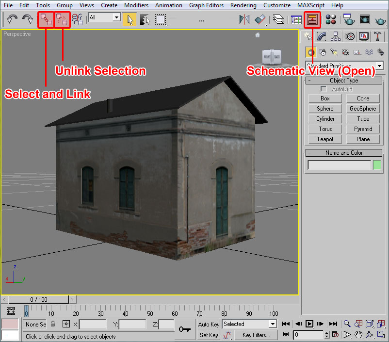 Una vez en posición, y mediante "Select and Scale" procederemos a dar un tamaño al cubo semejante a la ventana. El procedimiento será semejante al anterior, jugando con las dos flechas.