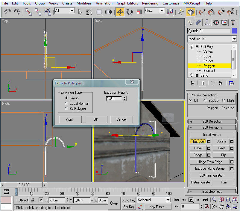 Y mediante "Select and Move" los desplazaremos hacia arriba, usando la flecha verde, hasta que se ajusten al contorno del arco de la ventana: