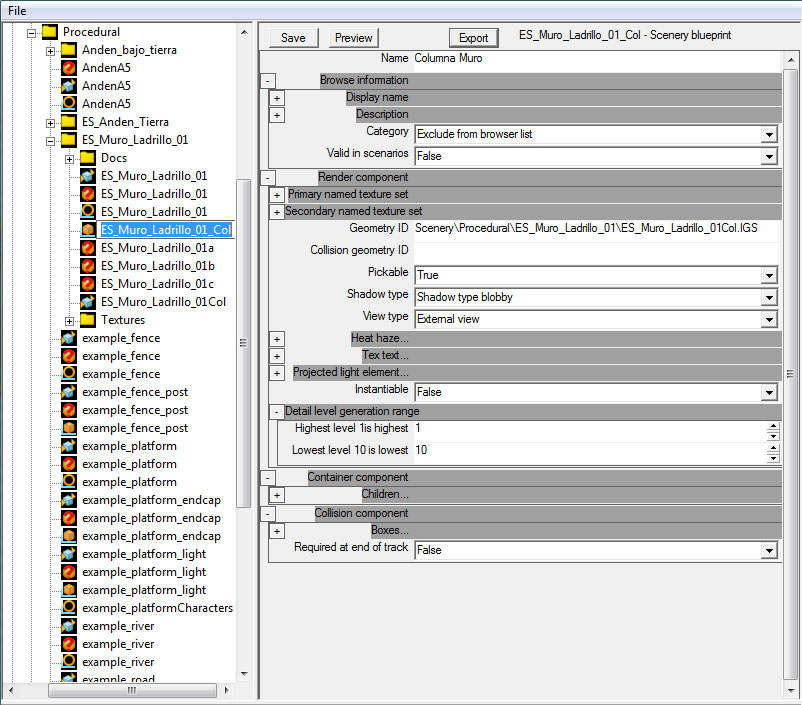 1. Objetos proceduralesUn objeto procedural es un elemento 3D del cual tan solo se informa al simulador de su perfil, procediendo el motor de la simulación a generar el volumen del objeto por extrusión de dicho perfil, ajustando dicho desarrollo a un perfil recto, curvo o mixto que se determina en el momento de situarlo en una escena del simulador (o lo que viene a ser una ruta).