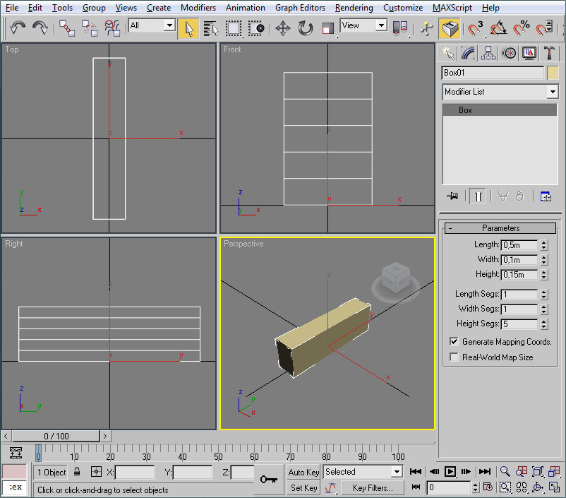 - Una vez abierto el editor UVW pincharemos en un viewport (el de perspectiva será ideal) sobre un lateral del muro.