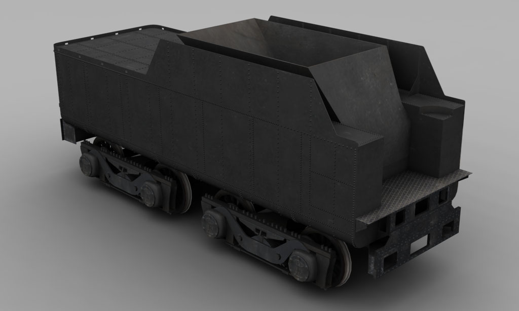 Hasta aquí un breve resumen del estado actual del trabajo. De momento hay mucho elemento provisional, y mucho (pero que mucho) trabajo pendiente por realizar. A título de ejemplo, los remaches que se observan NO irán en el modelo final (so pena de sobresaturar el simulador, porque os prometo que hay muchísimos remaches en el modelo), los he modelado tan solo porque es sencillo (haces un remache y te pasas un buen rato con recorta y pega) y porque me servirán para obtener las texturas definitivas de la caja del ténder por proyección de los mismos sobre la textura lisa inicial.