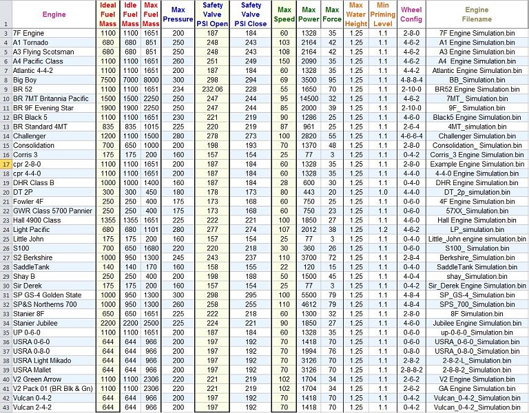 Como vemos, en el listado hay valores pequeños, como el de la Little John, establecido en 3, que son 3.000 libras. o lo que es lo mismo 1.300 kgs. Me parece un poco poco, aunque no tengo los datos de la locomotora real. Una 020T de Renfe pequeña, como las albardas de Triano, tienen una potencia de 2.830 kg, aunque es cierto que la más pequeña de vía ancha que ha habido, las 020 del Urbano de Jerez tenían sólo 930 kg. Podemos admitir el valor como válido, pero no su extrapolación, como se ha hecho, en la 021 "Sir Derek" que usan los mismos, aunque sea una locomotora mucho mayor, sin duda porque copia de aquella. En sentido contrario, para otra Saddle Tank idéntica, se establecen sin embargo un valor de 15 de esfuerzo de tracción, lo que serían nada menos que unos 6.818 kg, que es le que tenían locomotoras 230 grandes de Renfe...