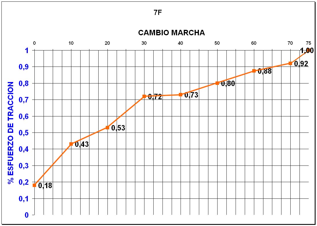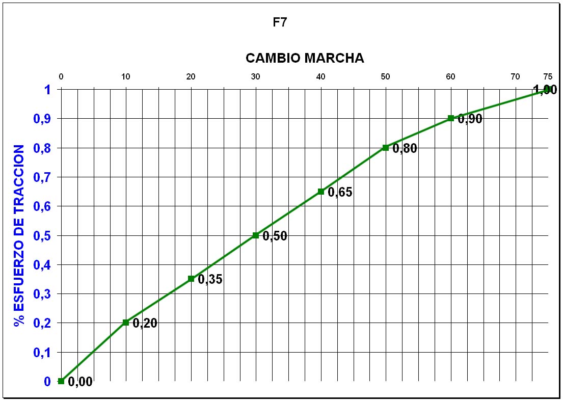 Este es un caso curioso que demuestra que las físicas de RW se diseñaron pensando en el vapor. En este tipo de tracción las relaciones de esfuerzo de tracción con velocidad y cambio de marcha se hacen sobre el valor 1 para potencia máxima y reduciendo el mismo en proporción.