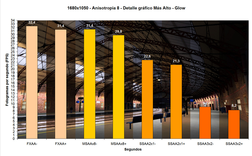 Impacto en rendimiento, según niveles de antialiasing (clic para agrandar):