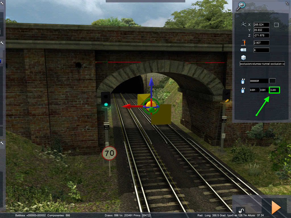 El túnel en cuestión es el de Padornelo, de casi 6Km. El problema de los volúmenes de oclusión que trae por defecto el simulador es que cuanto más los estires más se estirará la zona de transición a la oscuridad por lo que en túneles largos habría que recorrer una distancia considerable hasta alcanzar la total oscuridad. No he probado a crear un volúmen propio pero puede ser interesante.