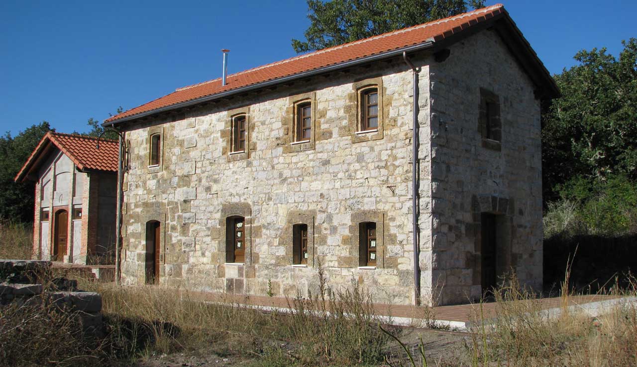 La otra es una composición con una foto real del mismo edificio, antes de su actual restauración. Considérese que las piedras de la clave de la puerta habían sido sustraidas con lo que el hueco parece mucho mayor de lo que era. Aún así, hay referencia sobradas en las del quicio para ver cual es el tamaño. La persona del polo verde medía como 1,80 aproximadamente.