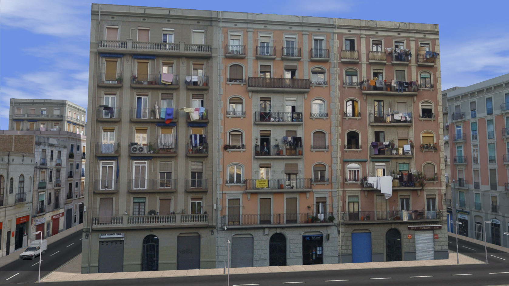 Un par de bloques más de edificios suburbanos, en este caso parte de los inquilinos han sido desalojados y se teme un pronto derribo de los mismos, aunque un vecino resiste al