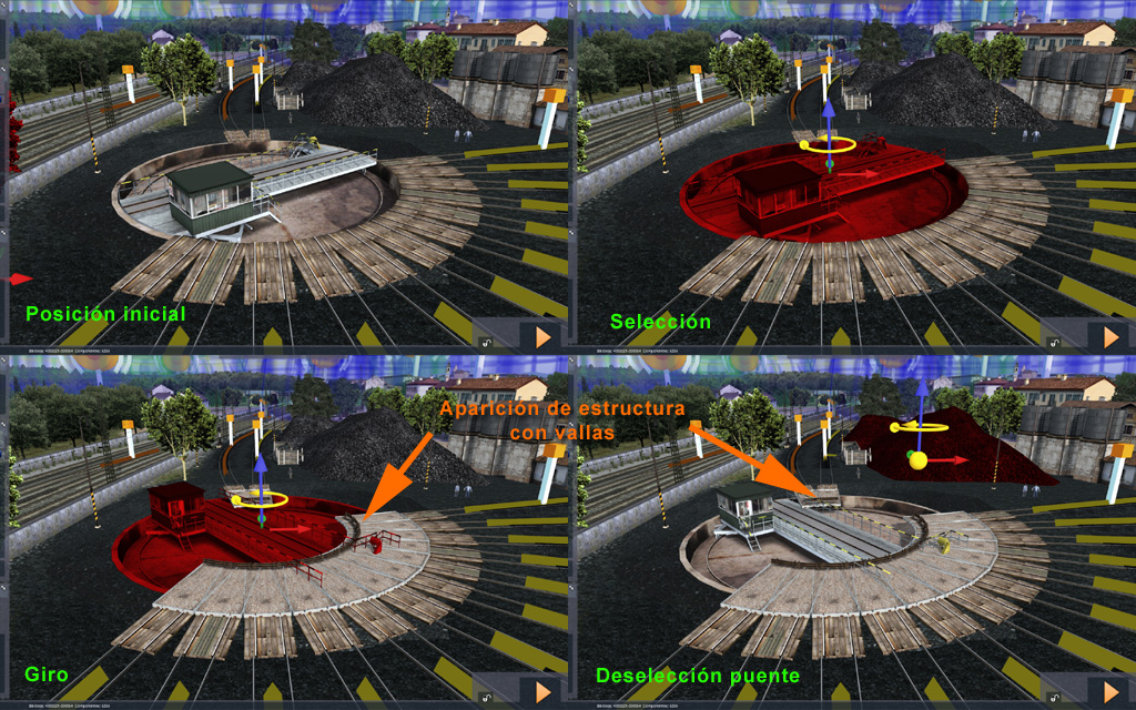 2) El creador del escenario "estandard" (con creación de actividades a realizar) debe colocar inicialmente la unidad en la vía con la misma dirección (vector) de salida del puente giratorio.