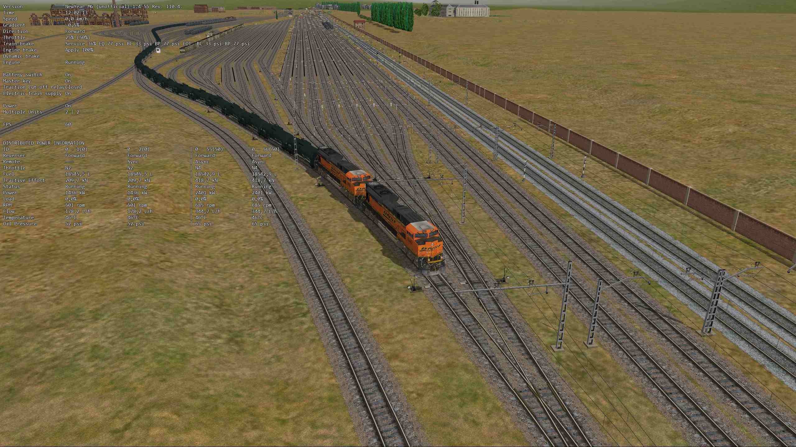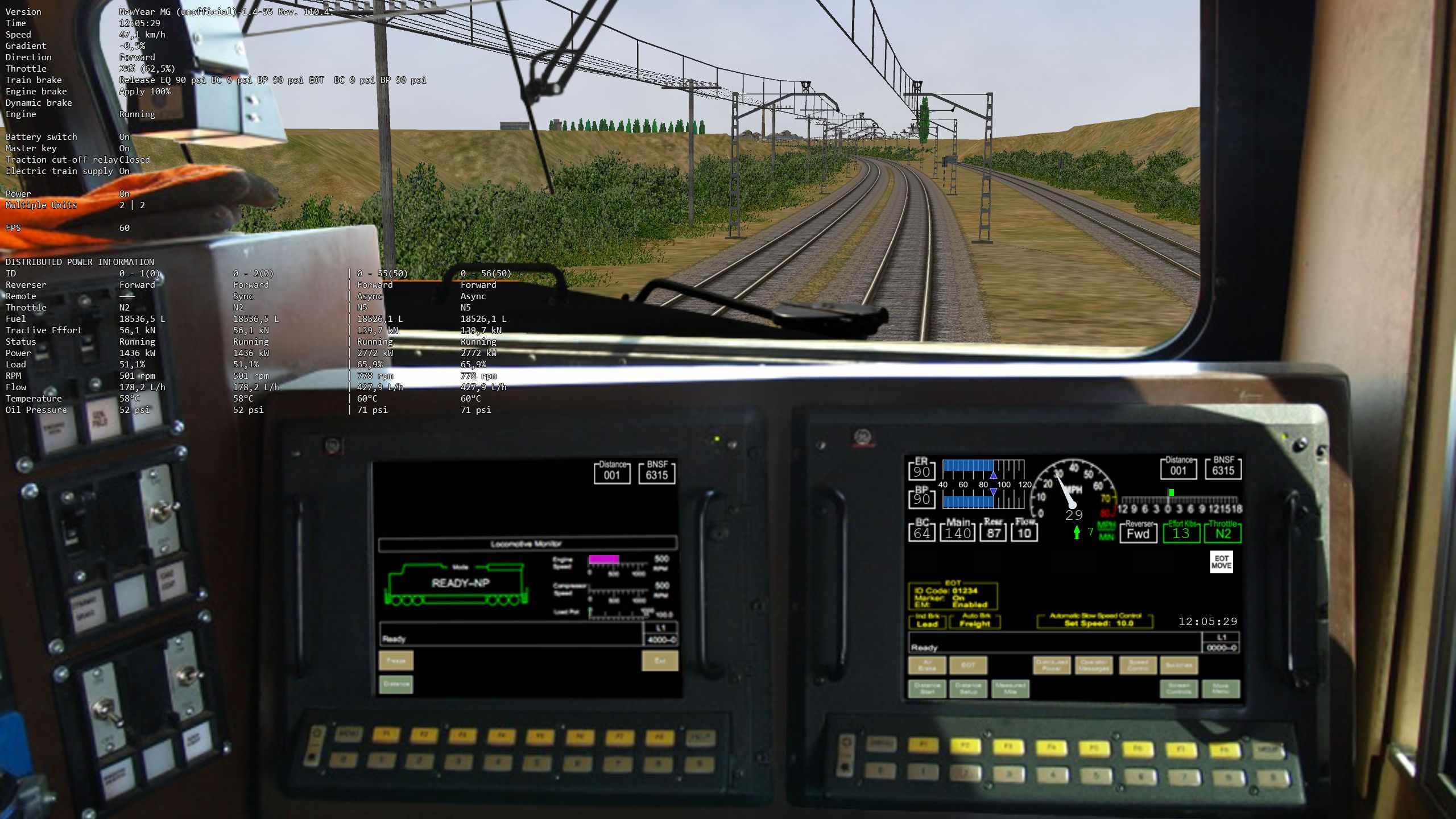 En la captura de la cabina (saliendo de León Clasificación) se ve la información de las cuatro locomotoras y como el Throttle de las dos primeras