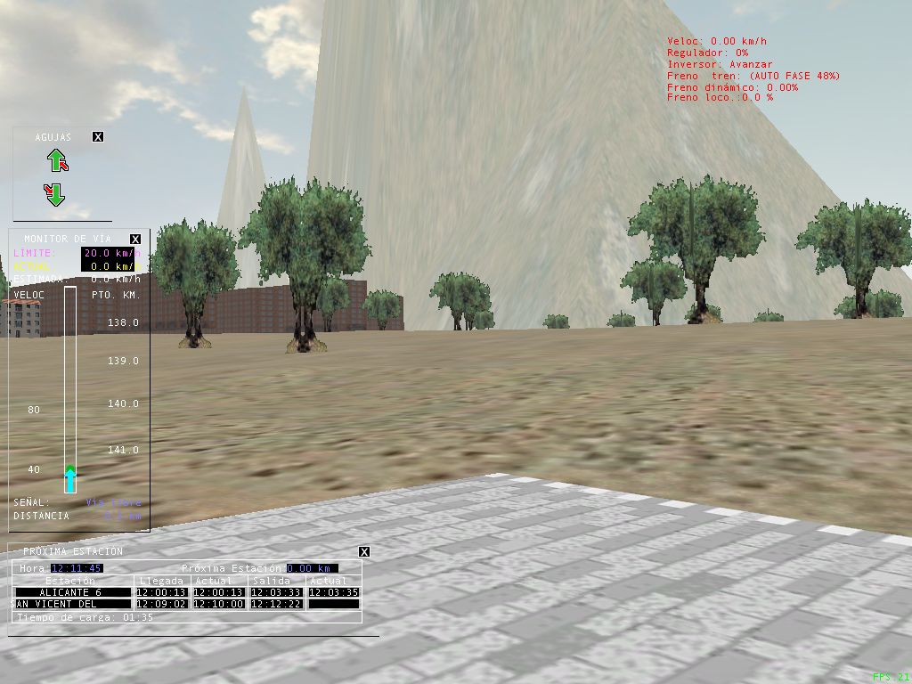 Cerca del km 48 (Agres) cruzamos la vía estrecha que iba hasta 1969 de alcoy por villena a cieza, en la simulación hay unos 2 kms de esta via y su estación de Agres, quedaría bien que circulara algun trenecillo por ella en alguna actividad.