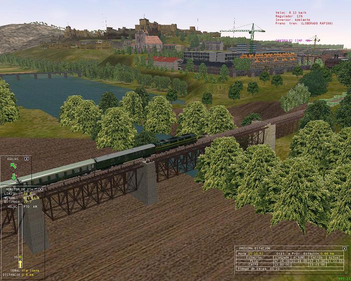 Comienzo sin problemas y todo trascurre de esta manera hasta que engancho la locomotora a los vagones. Cambio de cabina y aquí es donde empieza mi problema ya que no consigo que mi tren se mueva a pesar de que el velocímetro marca velocidad y me sale un mensaje diciendome que voy a más de 100 km/h. No hay mensajes de patinaje ni frenos bloqueados ni nada parecido.