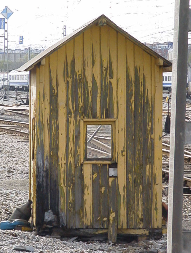 Esas garitas de pasos a nivel fueron unas unificadas, había varios modelos, que se crearon en las carpinterias de Explotaciones Forestales a mediados-finales de los 70. Hace unos días ví unas en Almohaja y en Caparrates, pero no las fotografié, de todas formas están afectadas por el paso del tiempo y afortunadamente no por el vandalismo, dado que por allí sólo se acercan las bestias y éstas son más humanas.