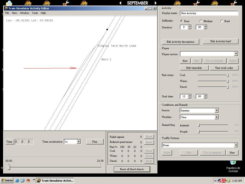 . (Desastroso) Si se intenta eliminar algún segmento de vía inmediatamente adyacente al tramo desaparecido, RE se niega en redondo: "Adjacent track section not loaded. Cannot select this object" (o algo así).