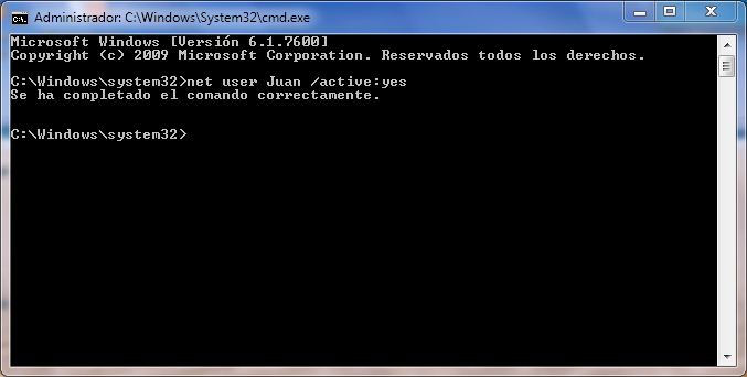 net user (Tu nombre de usuario sin parentesis) /active:yes