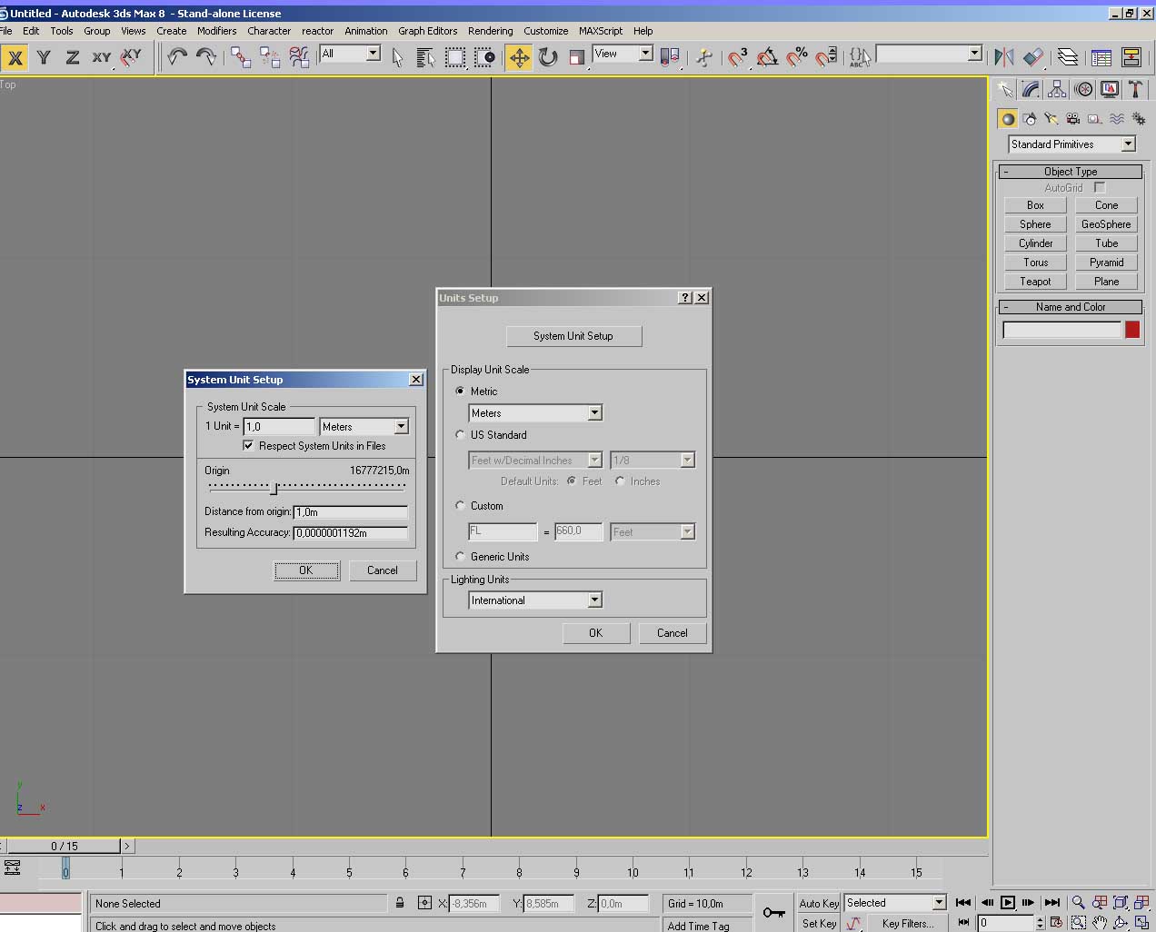 • Absolute Mode Transform Type-in: En este modo los valores se aplican de forma absoluta. Es decir, si un objeto que está a 8 metros en el eje X le aplicamos con la herramienta Move un valor de 2 en el eje X, el objeto se situará a 2 metros en el eje X (se desplazará a dos metros del centro de coordenadas de la escena, ignorando su situación inicial).