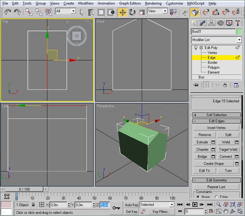 A destacar también que si hacemos clic con el botón izquierdo del ratón sobre el nombre del viewport, este pasa a ser el viewport activo sin perderse la selección del objeto actual. Esto es importante para poder editar un objeto de forma continuada en todos los viewports, como veremos más adelante.