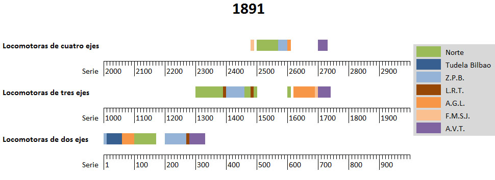 Con la absorción de la compañía de los ferrocarriles de Almansa , Valencia y Tarragona, el Norte ya no pudo mantener la numeración existente hasta el momento. Se decidió entonces reajustar el sistema y volver a renumerar las locomotoras existentes según este nuevo sistema: