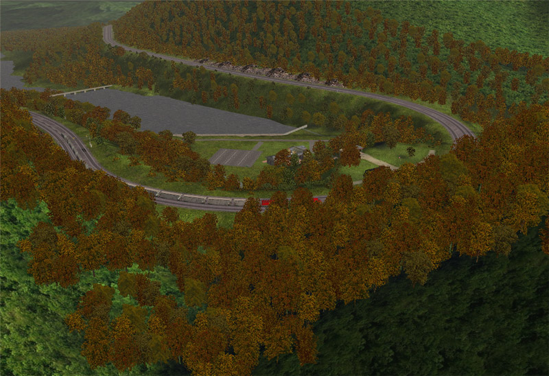 Realmente es muy buena esta ruta NS Horseshoe Curve, también muy bonita captura, pero que tren con máquinas rojas llevas allí?.
