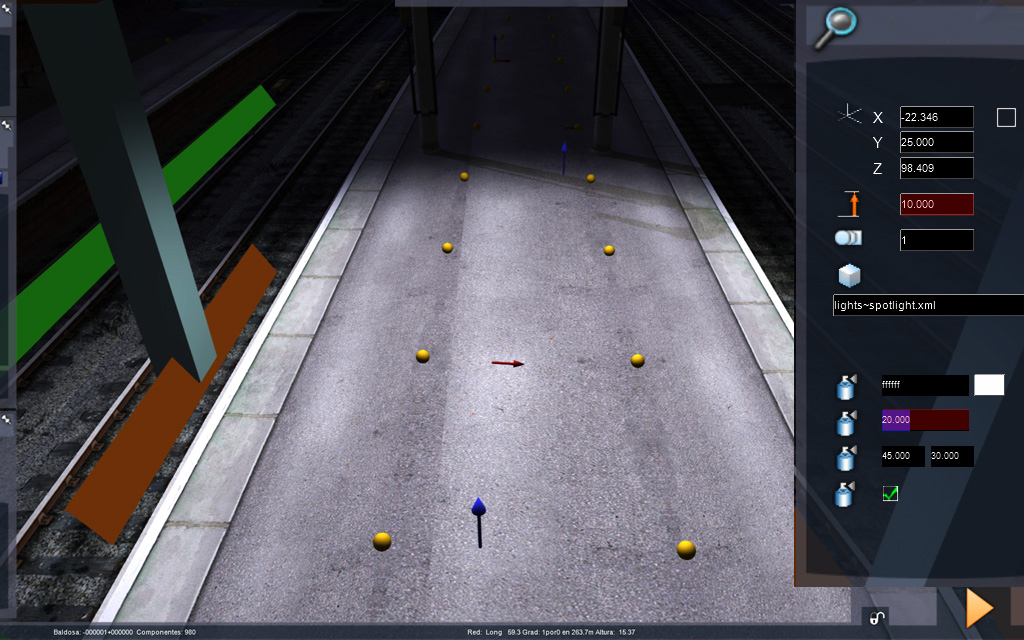 Estamos trabajando la iluminación de rutas, no de locomotoras, por lo que las luces spot las colocaremos normalmente de forma vertical: