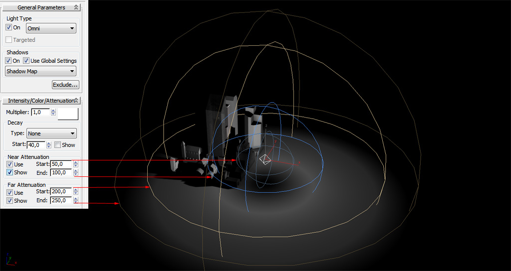 Influencia del parámetro "Light Range"