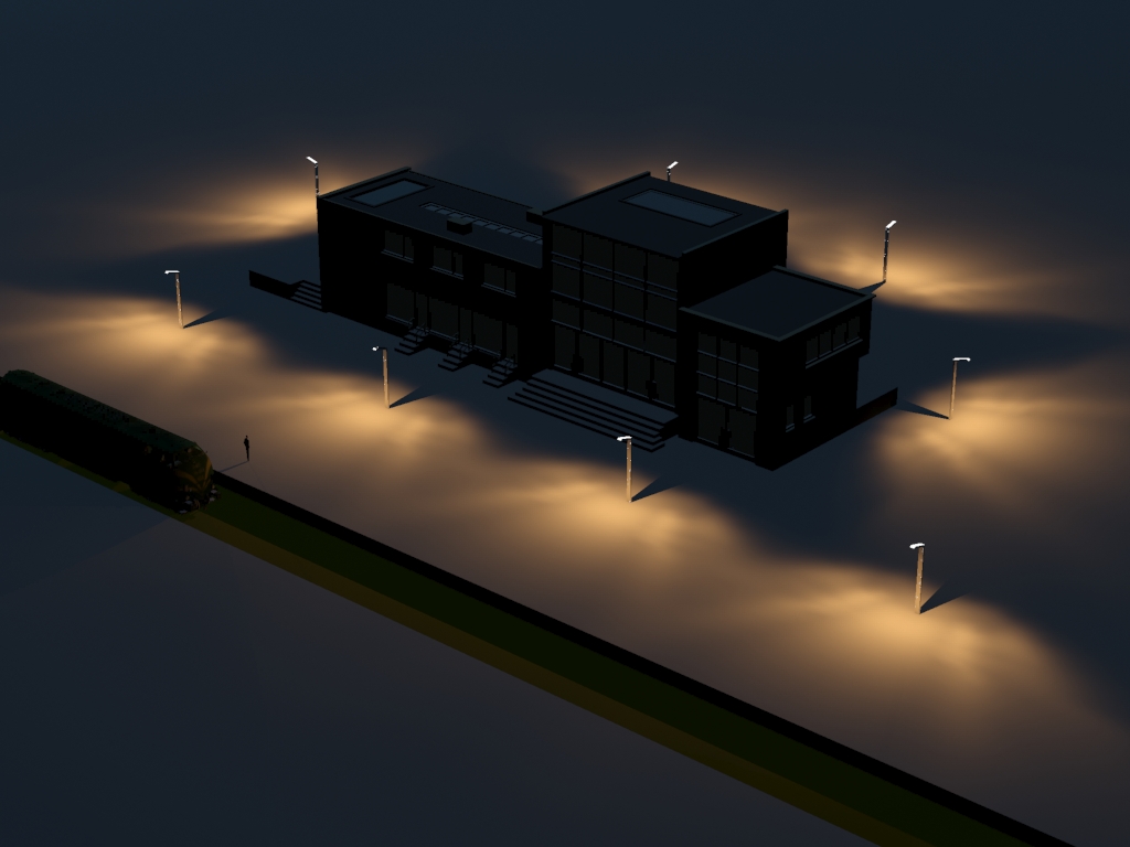 Me he animado a hacer un pequeño estudio de impacto de farolas utilizando ficheros fotométricos IES de iluminación proporcionados por el fabricante, en este caso farolas Santa&Cole http://www.santacole.com/es/catalogo/farolas