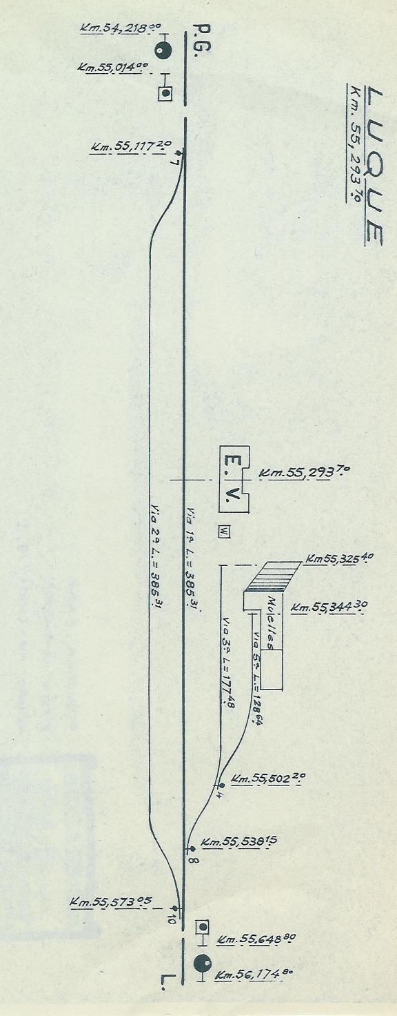 La estación de clasificación está en el centro, entre las dos líneas, la he desmenuzado un poco más para que la apreciéis mejor. Acababa en un lomo de asno que no tenía la otra vertiente, era toda una rampa que ascendía sobre un muro al lado de la vía de Andaluces. No recuerdo que tuviera señales, así que las maniobras las dirigía el capataz y tenía dos especialistas, que yo recuerde a su cargo.